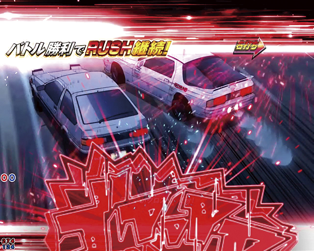 最速ダウンヒルRUSHは継続率約88%で、大当り出玉は180個(2R)・420個(5R)・820個(10R)の3種類。制限時間内に図柄を揃える「タイムアタックモード」と、ドリフトを成功させれば大当りとなる「ドリフトモード」、2つのモードから選んでライバルとのバトルを楽しめるぞ。