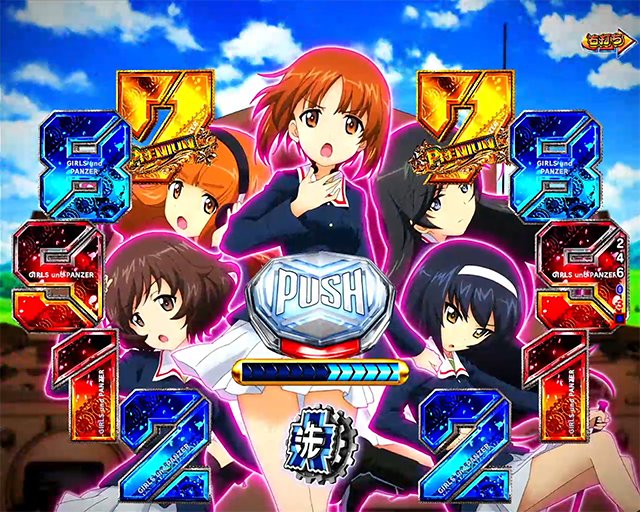 本機は大当り確率1/199.8のライトミドル。初当りの約99.9%で出玉300個の「パンツァージャッジメント」(成功率約60%)が発生し、成功すればST1回転の「運命の戦車道」に移行する。そこで大当りを引ければ、いよいよLTに突入だ。