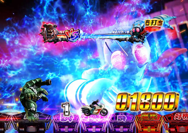 右打ち「超連撃バトルRUSH」は怪人を3撃以内に倒せば小当り当選。カメバズーカ登場で転落のピンチとなるが、撃破できれば1500個払い出し+RUSH継続の新感覚小当りRUSHになっている。