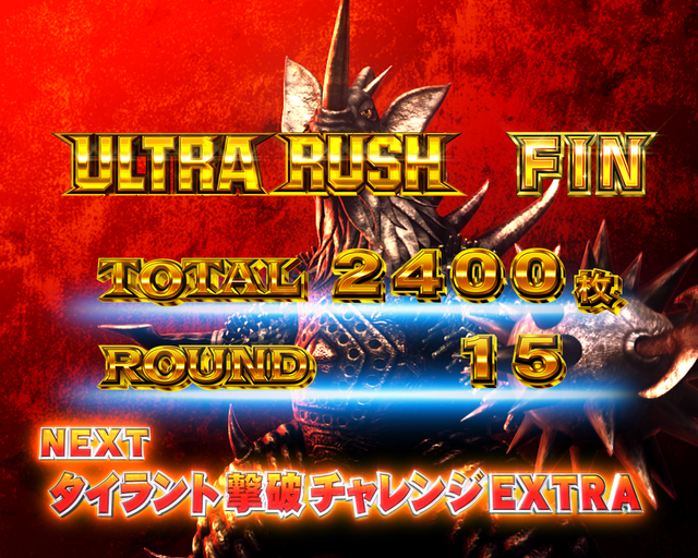 タイラント撃破で1セット37G+α、純増約2.7枚のAT「ULTRA RUSH」に突入する。