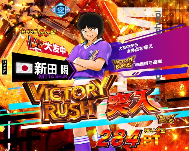 通常時はシリーズ機を踏襲し、「黄金の夢 U-23編」や「宿命の対決SP」、「大空へはばたけSP」などのリーチに発展すれば大チャンス。初当りは「全力VICTORY BONUS」ならRUSH濃厚、「BATTLE BONUS」はラウンド中のチャレンジ成功でRUSH突入となる。