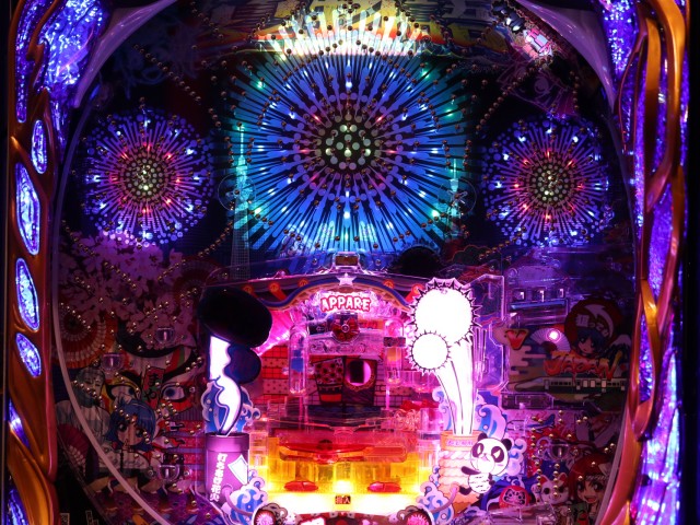 デジタル変動の大当り確率は1/27.3で、全6種の「メガ花火リーチ」や高期待度の「キレパンダ花火リーチ」などの演出から大当りを目指す。