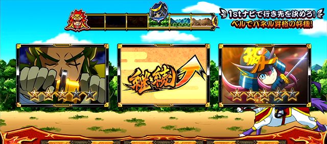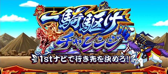 通常時はおもにレア役などから「一騎駆けチャレンジ」を目指し、一騎駆けチャレンジ中の1stナビでCZの種類を決定。CZ成功後はAT高確率ゾーン「戦極」に突入し、消化中の金7揃いがAT当選までの基本的な流れとなる。一騎駆けチャレンジ当選率は1/156.7~1/91.3(設定1~6)と比較的当たりやすい仕様のため、低設定でも早いゲーム数でAT当選のチャンスを掴むことが可能だ。