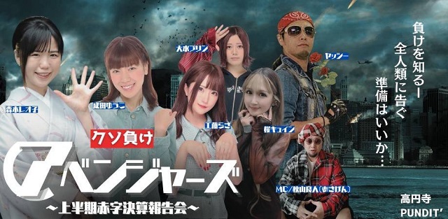 メンバーは私(裏切り者)・成田ゆうこ(貧乏)・工藤らぎ(カニ歩き)・大水プリン(GOGOマリン)・桜キュイン(パチンコ寂聴)・ヤッシー(パチプロ)の6名。トークライブでは我々の大敗トークがみなさまの乾いた心を癒したことでしょう。終演後はクソリプが減ったとまことしやかに囁かれているらしいですし。