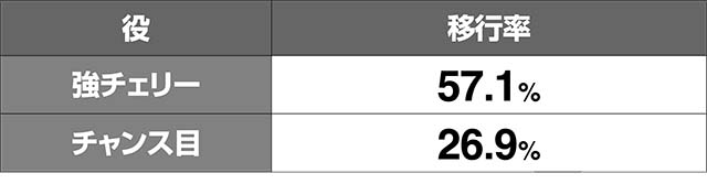 上村愛子さんよろしく「一段一段」、というのも悪くないですが、強レア役を引いた時には一気に最上位までジャンプアップ、ランクSの出現率が大幅にアップしていました! 弱役ではランクSへの移行が確認できませんでしたが、2連続で弱チェリーを引いた際にはランクAへの移行も確認できたので、何かしらランクアップの抽選を行っている可能性は高そうです。