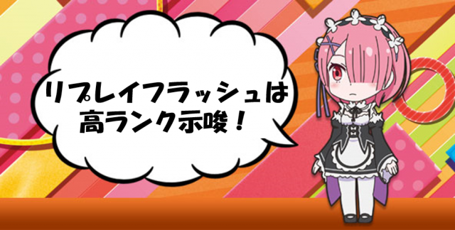 リプレイ入賞時に、普段と異なるフラッシュをすることがあります。こちらは皆さんある程度予測がついているかと思いますが、このような結果に。