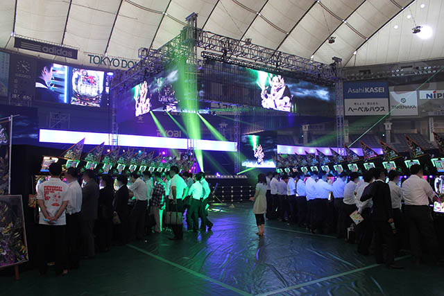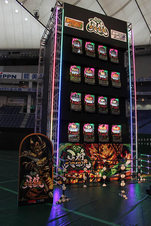 そしてもう1機種が『SLOT牙狼』。これ、なんと東京ドームで行ったのです。東京ドームに隣接するホテルでもプリズムホールでもなく、東京ドーム。グラウンド部分に機械を置いて試打してもらいました。