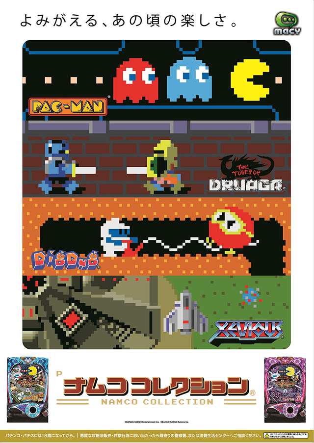 『パックマン』、『ディグダグ』、『ゼビウス』、『ドルアーガの塔』……といった私と同世代の方に懐かしのゲームサウンド、キャラクターはそのまま!