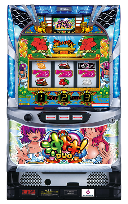 ということで、今回コラムで触れさせていただくのはこの年末ホールデビューが決まった沖ドキシリーズ最新作『沖ドキ!DUO』。デカコイン、チビコインともに同じスペックで登場です。