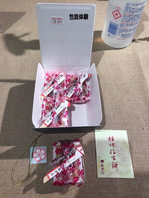 信玄餅の包装体験をしてきました。工場見学でプロの方々の包装を見てからの体験だったので、簡単に、そしてスピーディに包装できると思ったんだけど…実際は全くそんなことはありませんでした。早く包めない上に、包めてもきれいにならない。改めて、プロの技に脱帽致しました。