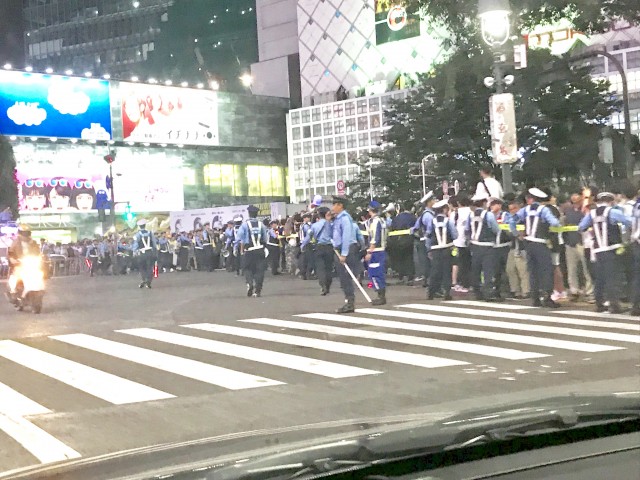 まさに「日本の勝利が決まった瞬間」くらいなので、人混みのピークはこの後でしょうかね? この警察の異常な数はピークを見越しての警備、と言った感じでしょうか。