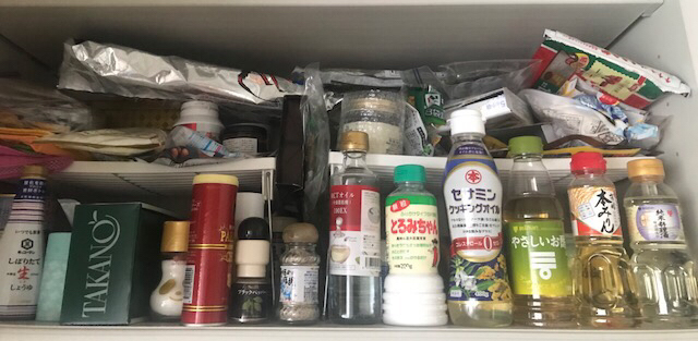 キッチンの上の棚もパンパン。物を下ろすだけでも面倒臭い。