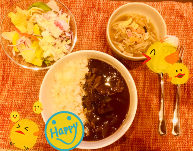 以前作ったルーの残りがあったので、またハヤシライスを作ってみました。ハヤシライスは電気圧力鍋で作るので、火にかけたのは野菜スープのみ。あとは盛るだけだったり、和えるだけ。