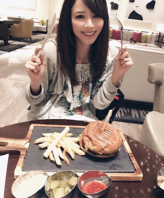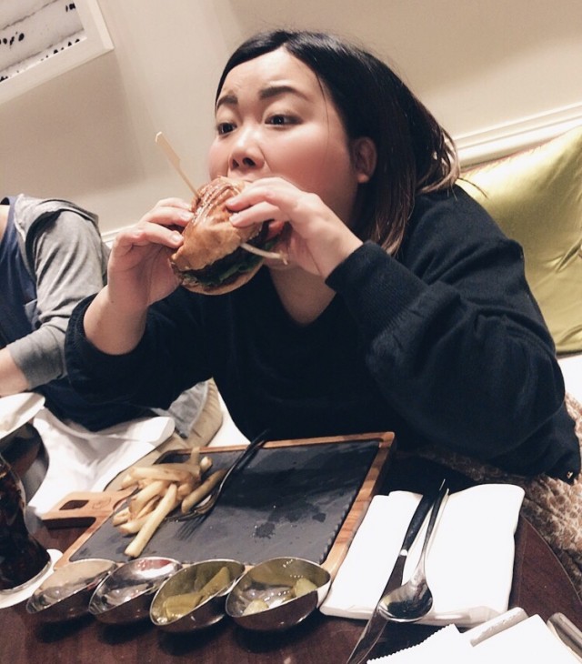 ハンバーガーだし、たぶん手掴みが正解だと思うけど、手掴みだと私は綺麗に食べられないので、気取ってナイフとフォークを使って食べました。