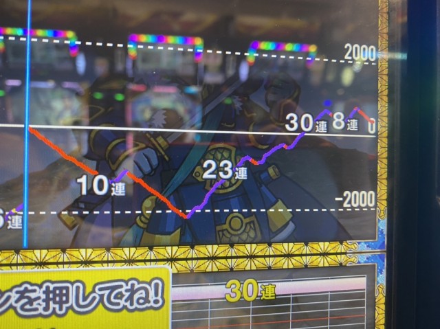 絶好調と思っていたのに、この大敗。ということは、もしかするとエンペラータイムは終わってしまったのかもしれない。ということは、これからは慎重に勝負する必要がある。ということは、今までの「政宗に空き台発見→座る」という偏差値低めの立ち回り(?)は封印しなければいけない。
