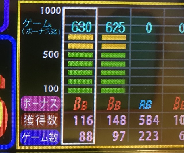 2連続天井で絶望しかない状況。このままAT間天井に到達するのかなと思っていたが、なんとかその前にAT当選することができた。