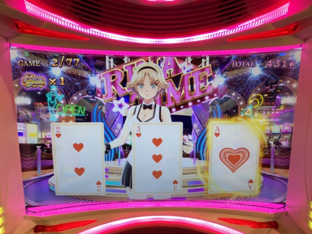 ダメだ、やはり私はリオと相性が悪い。僅か35Gで何ができるのだと半分以上諦めていたが、レア役のヒキが良くてバトルに勝利してゲーム数上乗せに成功。さらに再びバトルに発展すると