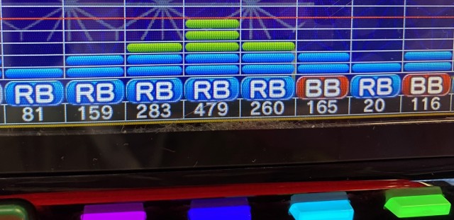 早々BIGに当選して、600枚獲得できたのだから悪いわけがない。もちろん、これだけで良台と判断するのは安直すぎるので、その後も打ち続けた。
