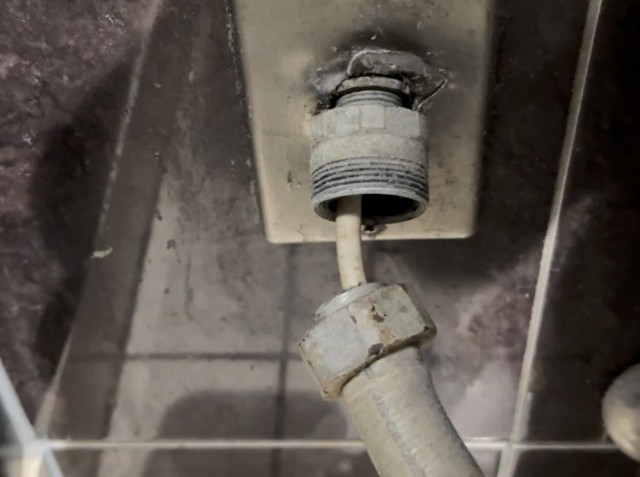「止」ボタンを何度押しても、シャワーはア〇ルに水を浴びせ続ける。接触が悪いのかと思って、力強くボタンを押すもア〇ルへの刺激は止まらない。