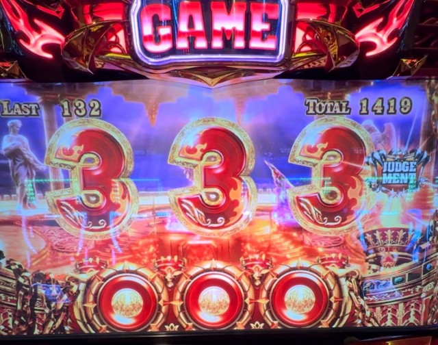 さらにGG中に青7を6連続で引いてジャッジメントのストックを2個ゲット。で、その上乗せしたジャッジメントは