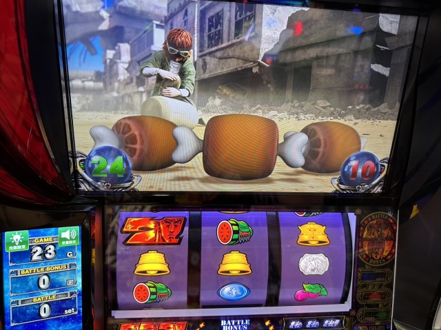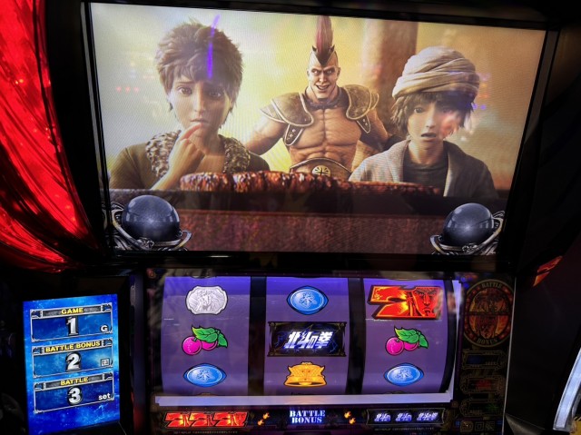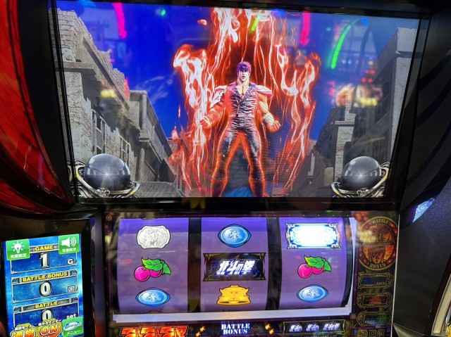 自分の狙い台は他人の狙い台というのが世の常なので、案の定、座れず。さて、どうしたものかと考えた結果、私が向かったのは『スマスロ北斗の拳』。
