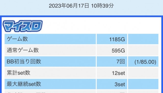 初当り22回、計66連、平均3連、と連チャン数がイマイチだったことだ。79%継続以上を引くのが下手なのか、66%継続で伸ばすのが下手なのか、それとも両方なのか。