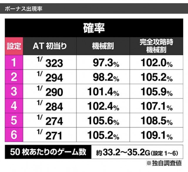 こんな感じで完全攻略すれば、奇数設定なら102.0%超、偶数設定なら105.2%超となる。
