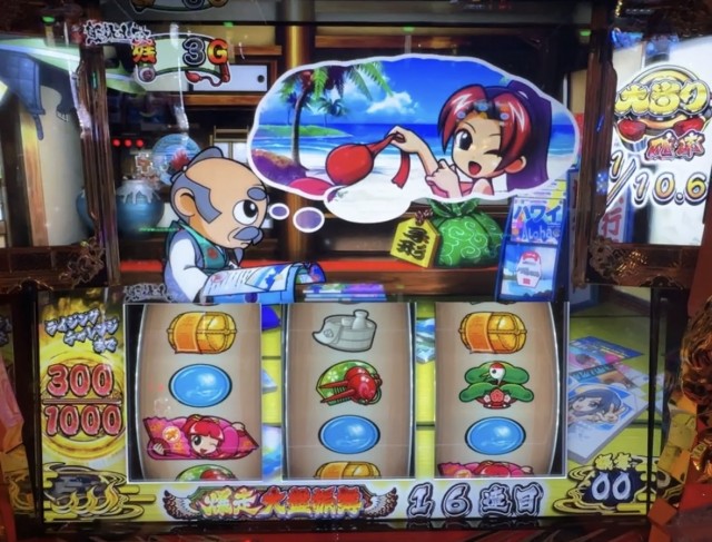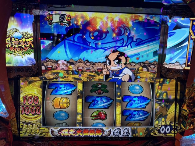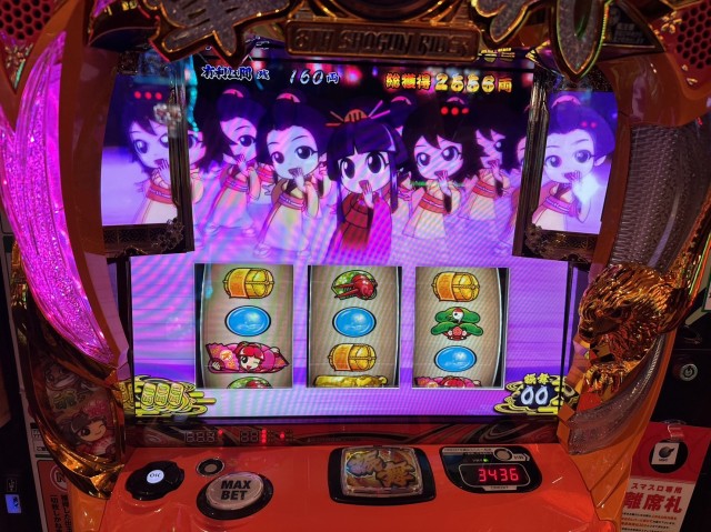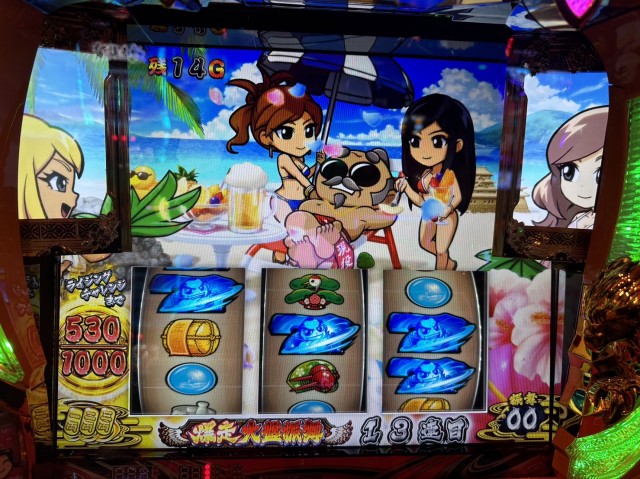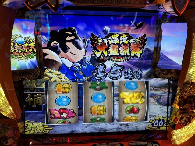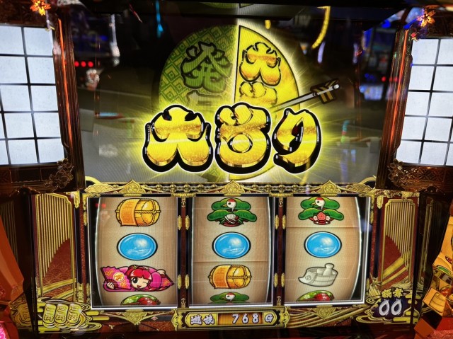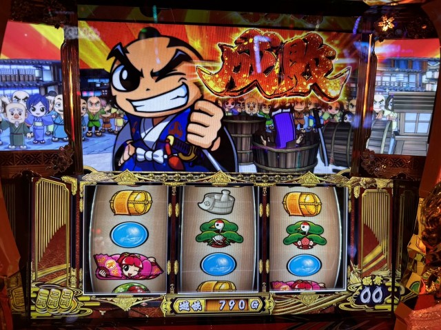 ちなみにホールではこれが初打ちとなるが導入前に試打で打ったことがあり、個人的感想はなかなかイイ感じだった。「吉宗=711枚」というイメージが強すぎて、過去シリーズでは711枚をゲーム性に無理やり組み込んでバランスが悪くなりがちだったが、今作はその呪縛(?)から解き放たれて吉宗の可能性の幅を広げた感じだ(711枚上乗せはあるけど、それを目指すゲーム性ではない)。