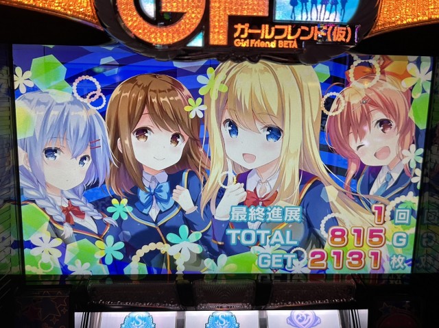 残念ながらGF以上にハイスペックな機種が多数存在していた&短時間勝負では純増枚数の低いART機では分が悪い(GFは+1.8枚/G)ので順位は高くなかったが、長年の夢が叶って大満足だった。というか、本気で優勝は狙っていなかった。