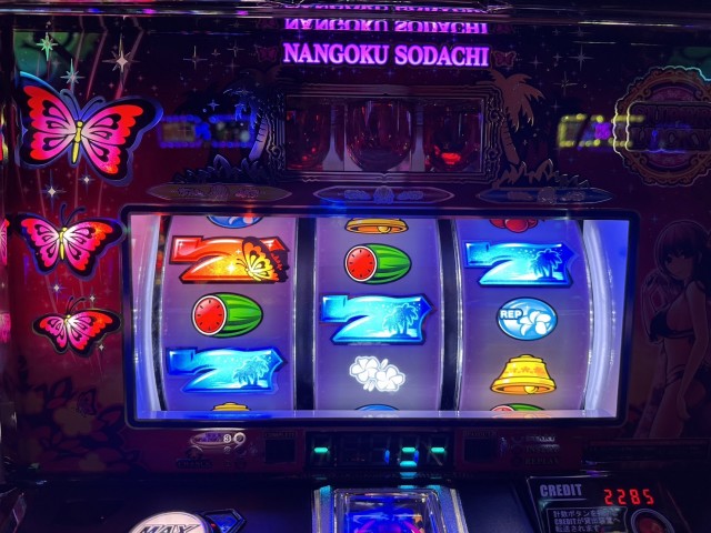 まず、南国育ち。新機種の取材帰りにふらっとホールに入って、とりあえず試し打ち、当たるまで打ってみるかと軽い気持ちで触ってみたら、投資3千円でキュイン、されど単発。世の中そんなに甘くない。