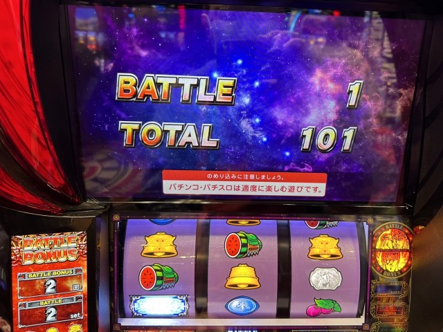 それでも初当り確率はすこぶる良好だったので追加投資することはなく、その数値だけを見れば設定6以上。ただ、当たり方の多くはたまたまタイミング良く中段チェリーを引けただけなので手放しでは喜べない。
