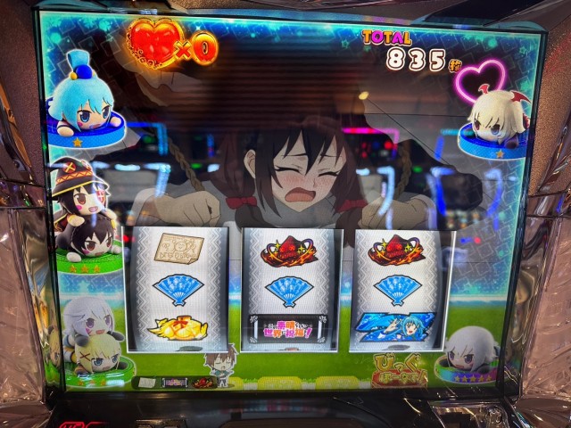 当日、選択した機種は荒すぎるとヤメ時に困るので比較的マイルドな『このすば』を選択。もちろん、この機種でもヤメるにヤメられずズルズルと引っ張られるという展開はあるけれど(というか多い)、仮にそうなったとしてもATの見返りがそこまで強烈ではないので諦めがつく。