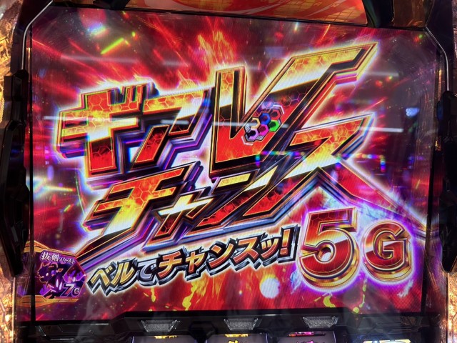 ギアVチャンスはベルとレア役が成功のカギを握っているので、当然のことながら抜剣バースト中は成功期待度も大幅にアップする。ここまで来れば神懸かり的なヒキは必要なく人並みのヒキでも激アツとなる。