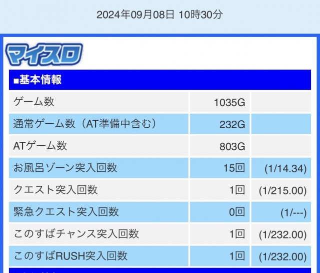 低ランクでCZが成功する、緊急クエストでデストロイヤーが出る、ボーナス中に7が揃う、再びお風呂ゾーンで5ptと4ptスタートも確認と設定差のある部分が出るわ出るわ。