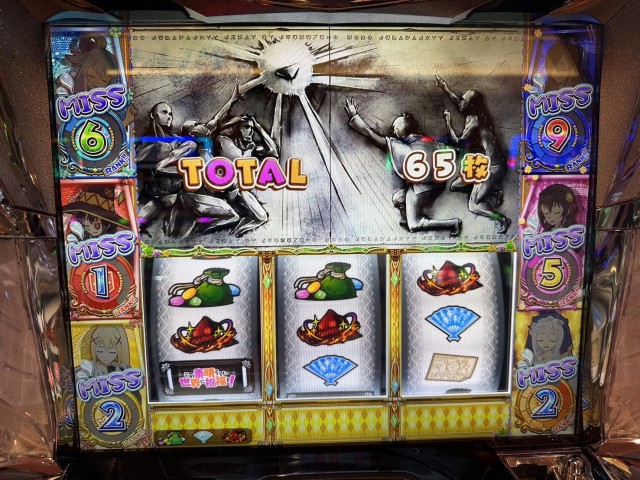 今日はヒキが絶好調&設定差のある部分も引けている。となると、今度期待するのはさらなる出玉。期待に胸高まり、ゆんゆんバスト。2400枚で満足することなくレバーON。すると、どうだろうか。