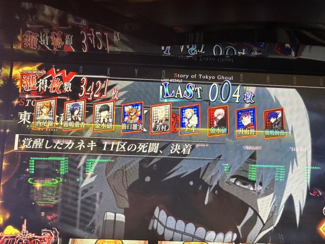 とくに強い日でも、何かを煽っていたわけでもなく、ドが付くほどの通常営業の日。おそらく、設定には期待できない日なので店内の様子は閑散としていたが、そんな中でも『東京喰種』(一発変換できて驚いている)は高稼働で驚かざるを得なかった。
