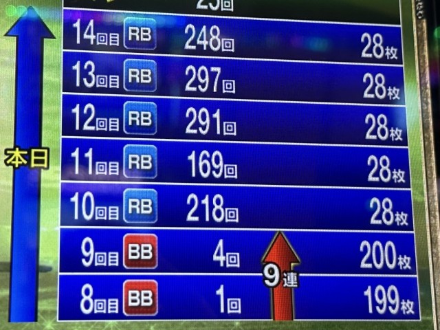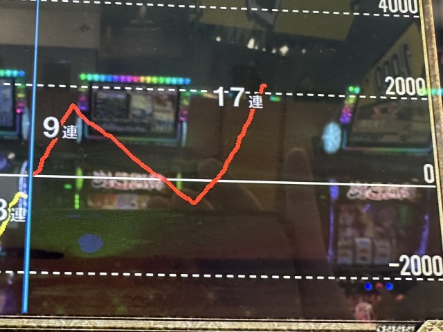 残念ながら連チャンは9連、1630枚で終了。期待獲得枚数以下で終わってしまったが、これでも十分に満足だ。やはり、今日は薄っ引きができる日だった。