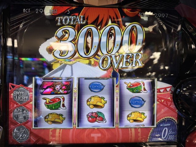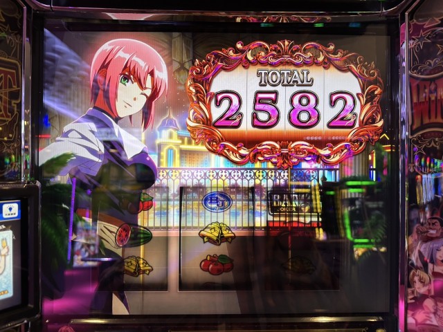 どれぐらい調子が良かったかというと、「差枚+2400枚を出しても有利区間が切れずに据え置きが判明する」というのを4回ほど経験した。前日はドチャクソマイナスで低設定の可能性大、そんな台での快勝が続いていた。