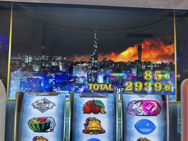 イケイケな連勝真っ最中だったので、「今ならドチャクソ荒い機種を打ってもイケるかも!?」そんなスイートな考えでプラスでもマイナスでも破壊王の名を轟かせているゴジラを打ってみたら、
