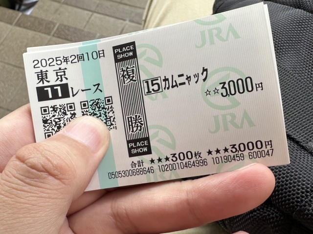 この手の話はときどき耳にするので、ようやく自分にも訪れたのかと感慨深い気持ちになった。また、間違えて買う場合は普段なら絶対に購入しない買い方になりやすいので、とんでもない大穴を当てて一攫千金…なんてパターンも聞くけれど、今回は複勝&人気のある馬だったのでちょい勝ち止まり。それでも人生初の幸運を噛みしめている。