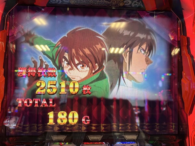 打ち始めてから8時間弱経ってようやく、そりゃ通らなきゃ困るというぐらいレア役を引いて初めて運命の一劇を突破するも、