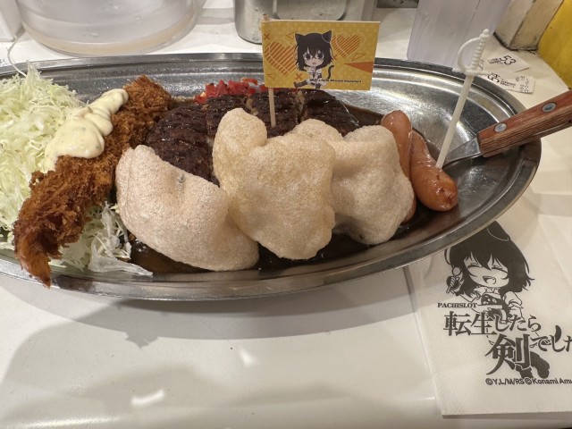 今回は『パチスロ転生したら剣でした』とのコラボ。物語の主人公である“師匠”はカレー作りが得意、メインヒロインであるフランはそんな師匠の作るカレーが大好きということでのコラボ。「師匠のわんぱくGO!GO!カレー」(1500円)を注文するとオリジナルクリアファイルをゲットできるぞ。
