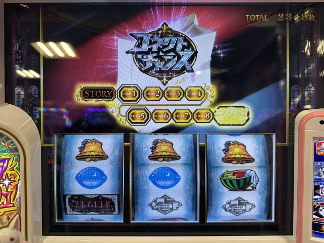 さらにコネクトチャンスは失敗で万事休す。残り1話で完走するけれど、残り1Gと超絶望。この1Gでレア役を引かないともうATは終わってしまう。
