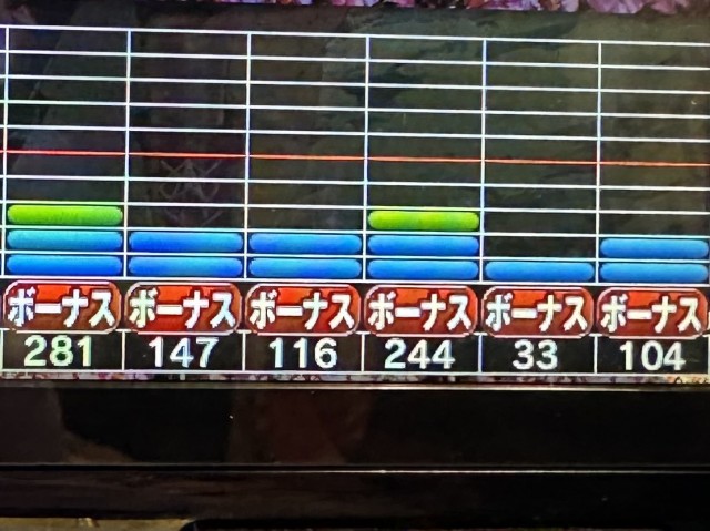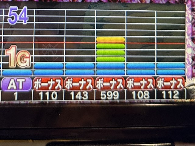 やはり、ボーナスが下手くそすぎた。7回目のボーナスでAT当選と相も変わらず下手くその極みだった。ハマリも出てきたので設定6の可能性も怪しくなってきた。