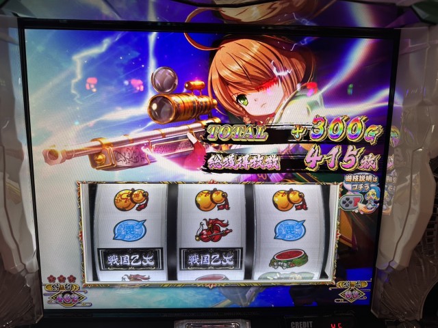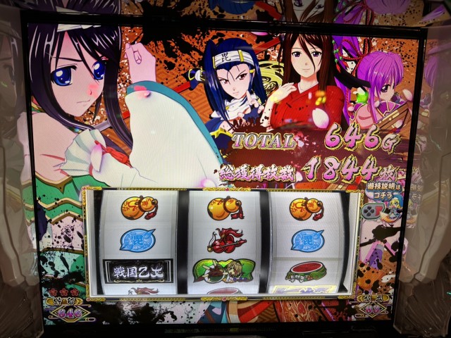 私が打ったのは戦国乙女4。途中で最深天井に持っていかれたりもしたが投資は1万円以内に収まった。