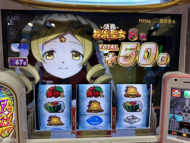 早い段階でBIGからATを射止めて、残りゲーム数ギリギリのところで神浜聖女に突入し、