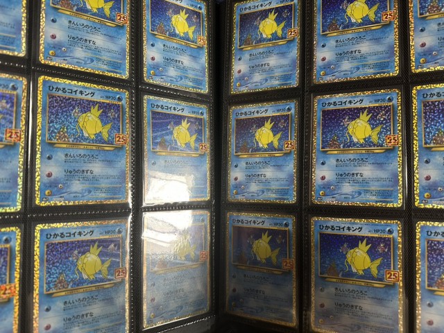 購入した当時は1枚2千円ぐらいだったものが、今では1~2万円ぐらいで取引されているのだから世の中恐ろしいものだ。要するに、これらのコイキングだけで50万円ぐらいの価値があるということだ。世の中恐ろしいものだ。ちなみにマッギョの価値は数百円程度。