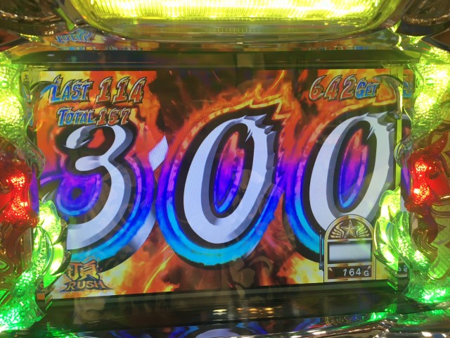 「頂SRUSHから大量上乗せして…」という話をよく目や耳にしていたので期待していたら、110G上乗せで終了。機種に詳しくないので、喜んでイイのか、悲しんでイイのか、平均だったのか、よく判らず。そんなモヤモヤ気分でいると、