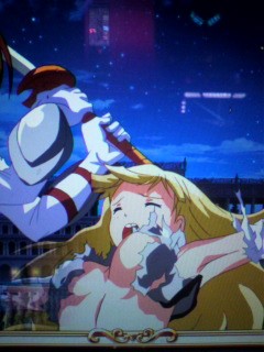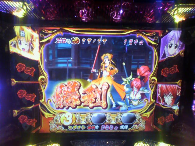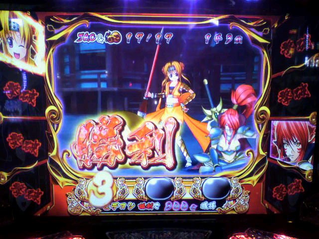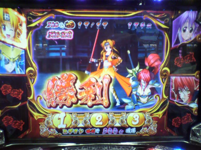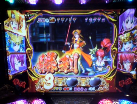 『シンデレラブレイド』のART中、押し順ナビに従うとアーマーブレイクする女の子。この決定的瞬間を撮りたくて、何度も撮影にチャレンジしたものだ。たしか、当時使っていた携帯には連写機能がなかったので、かなり苦労した記憶。