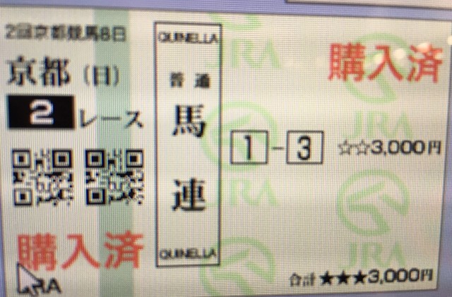 2レース目(京都競馬場)も続けてジャブ。これまたハズれてしまったが、あまり痛くない。